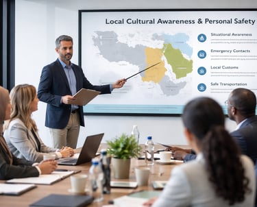 Targeted training programs focused on local cultural awareness, personal safety, security awareness, and employee welfare, supporting workforce readiness and risk mitigation in diverse or sensitive operating environments.