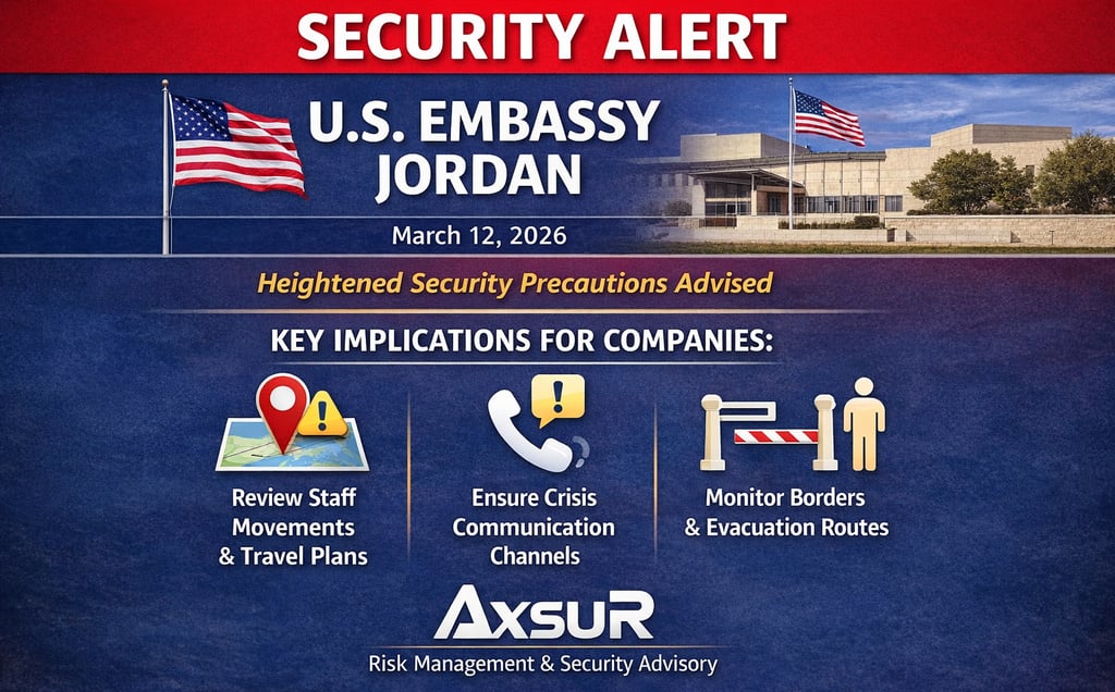 #MiddleEast #Jordan #RiskManagement #SecurityAlert #CrisisManagement #BusinessContinuity #AxsuR